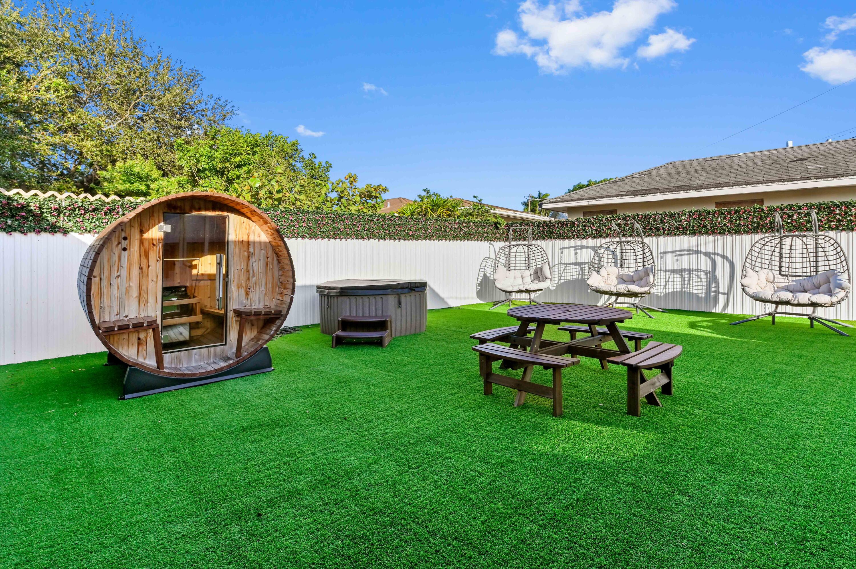 DescriptionAvailable short or long term, this beautifully updated 5 bedroom, 3.5 bath home delivers comfort, space, and modern elegance in a prime Downtown West Palm Beach location. With Rosemary Square, dining, shopping, and beaches nearby, perfect for families or anyone seeking a stylish, convenient retreat. The backyard is an absolute private paradise, transforming outdoor living into a year round resort experience. Unwind in the sparkling private pool, relax in the sauna, or embrace wellness with the invigorating ice plunge tuball complemented by a convenient outdoor bathroom. Entertainment is endless with a dedicated recreation area featuring arcade basketball, mini golf, cornhole, a pool table, and an Xbox setup. The beautiful, spacious garden offers a dedicated BBQ area and tranquil picnic spots, ensuring every day is an occasion in this exceptional West Palm Beach sanctuary. Available for annual or seasonal rental.