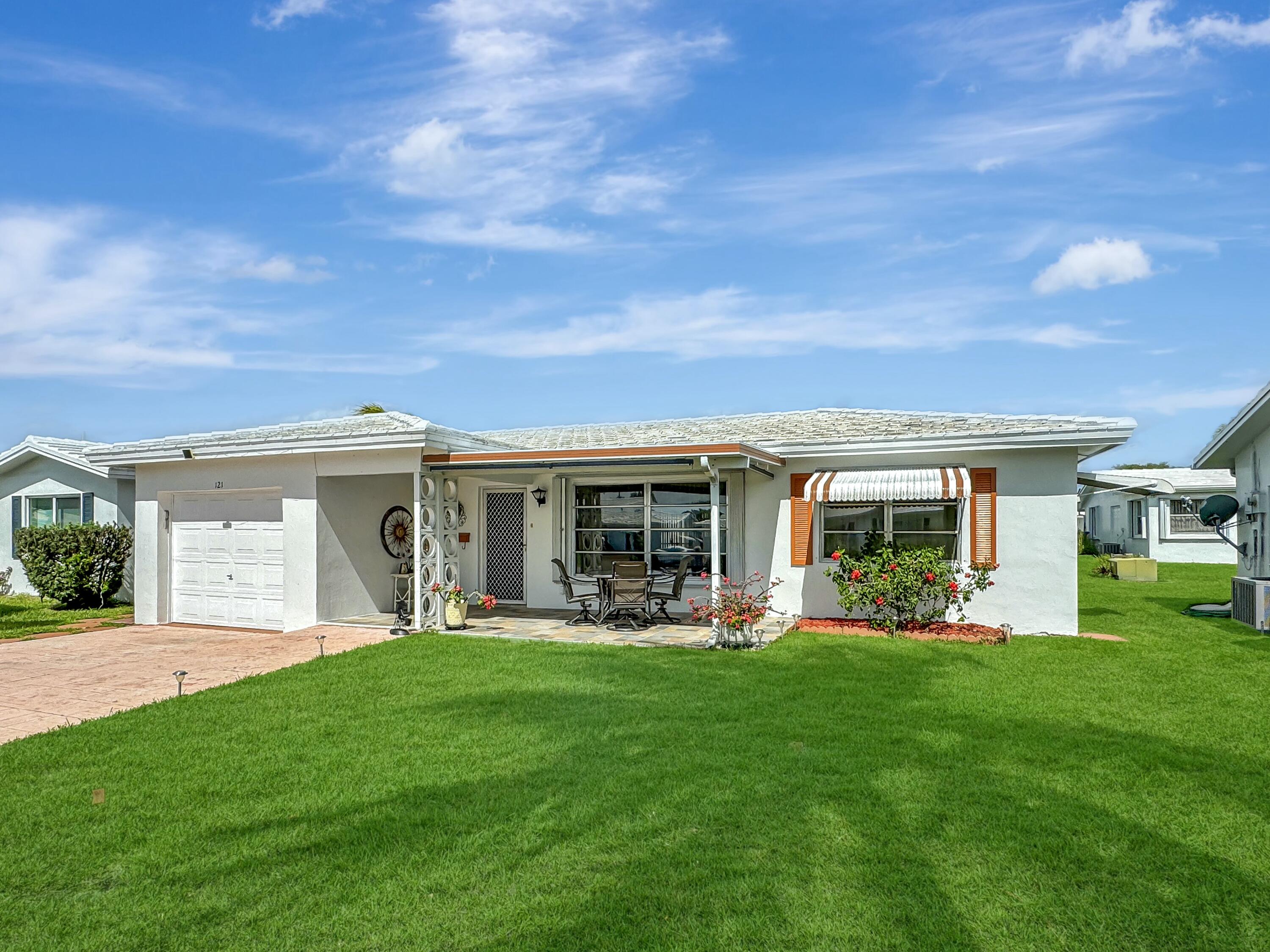 DescriptionSpacious home in Leisureville. Discover this magnificent concrete home model with land, located in a 55+ community in Leisureville. With a roof redone in 2019, this home offers a garage, parking space for up to 4 cars, and a large covered sunny patio, perfect for relaxation. A large kitchen and an open living room leading into the Florida room create a bright and welcoming living space. This community provides access to a 9 hole (Par 3) golf course, two clubhouses, two heated pools, a sauna, billiards, ptanque, and much more. Minimal fees of $298.00 per month cover water, lawn maintenance, herbicides, as well as exterior house painting and roof maintenance. Only 15 minutes from Florida's beautiful beaches. Don't miss this unique opportunity !