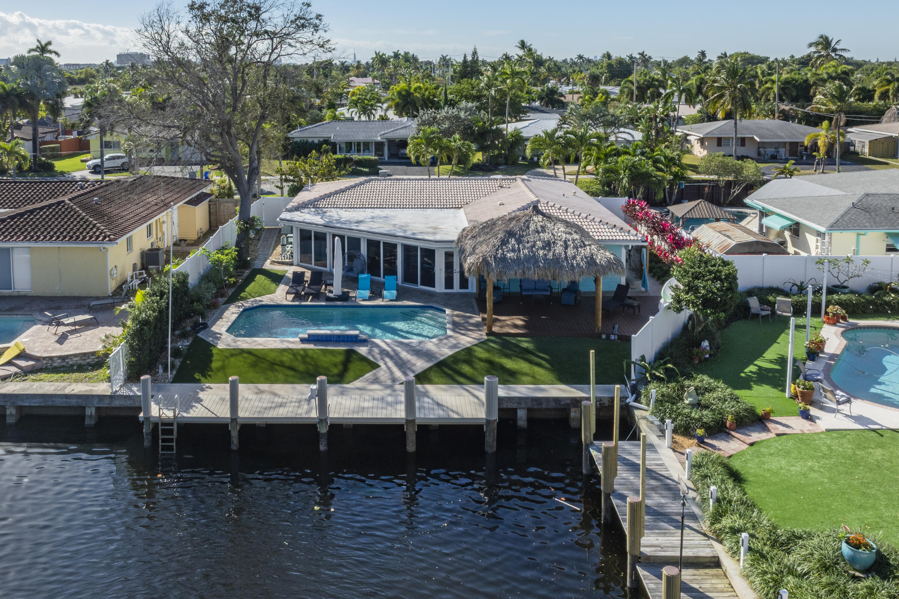 DescriptionPrivate waterfront oasis! This impeccably renovated resort style home offers the ultimate indoor/outdoor lifestyle with stunning water views and new high end finishes throughout. Elegant new kitchen, designer flooring, and spa inspired baths with soaking tub and walk in shower. Enjoy a saltwater pool, outdoor shower, Tiki hut, and new dock (bridge renovation nearby). Upgrades include impact windows, full water purification system, central vacuum, motorized shades, custom cabinetry, landscape lighting, new A/C with Blue Light protection, and gas stove, dryer, pool heater & generator. Room to add a 3rd bedroom. Rare opportunity to own a piece of paradise in the emergenging up and coming luxuries of Pompano Beach. Schedule your private tour today!