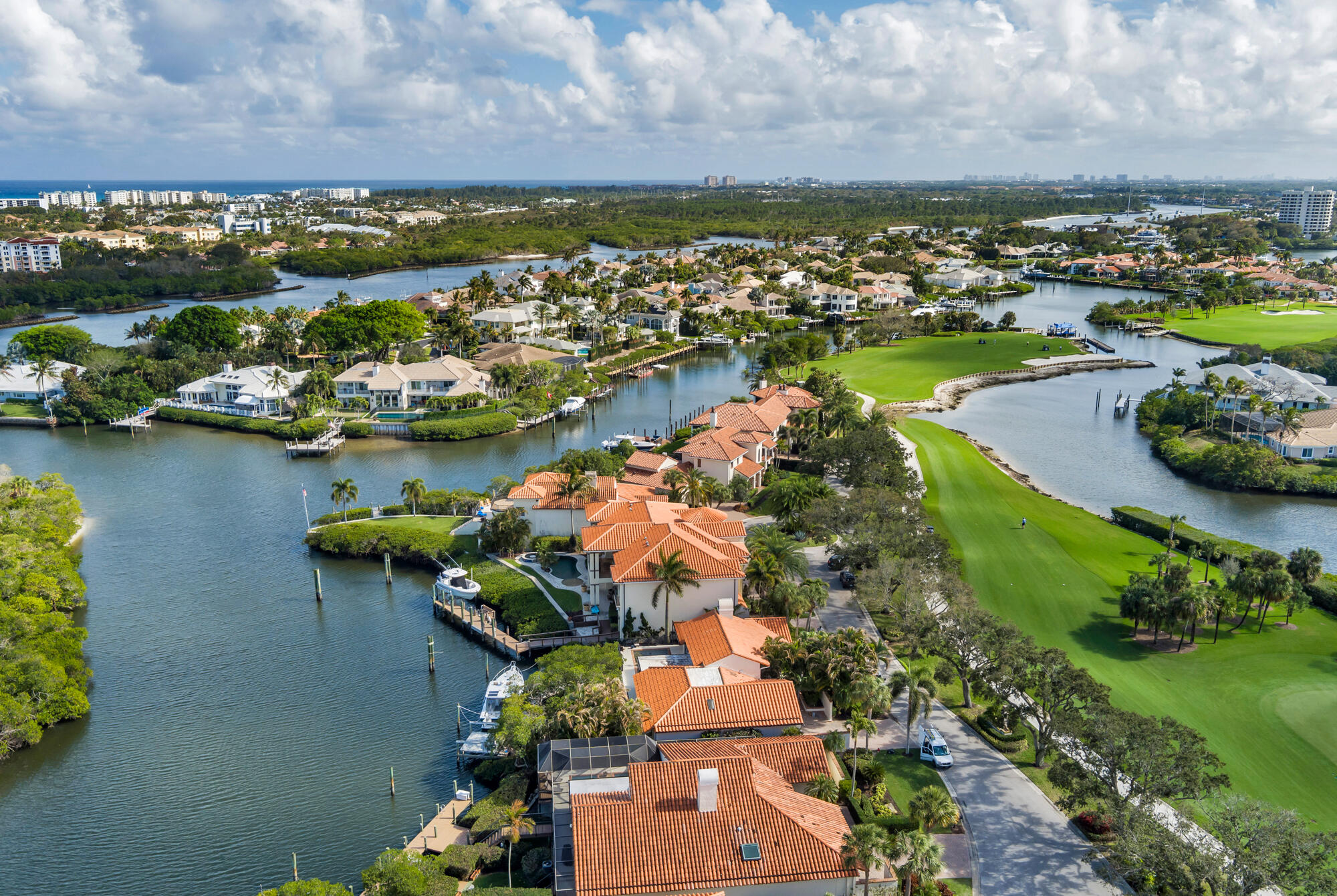DescriptionStunning Intracoastal Estate with 100 Foot Dock in Gated Jonathan's Landing Perfectly positioned within the prestigious gated community of Jonathan's Landing, this extraordinary waterfront estate offers over 6,185 square feet of luxurious living space and showcases some of the most breathtaking views in the community. From sweeping vistas of the Intracoastal Waterway, to a tranquil canal setting and private preserve island, the home delivers an unmatched waterfront lifestyle. What truly sets this property apart is the rarity of two spectacular and distant view corridors. The rear of the home captures panoramic water views of the Intracoastal, canal, and private preserve island, while the entrance side of the property enjoys sweeping golf course, marina, and stunning sunset views a combination seldom found in Jonathan's Landing. Rarely does a property offer two such dramatic vistas in completely different directions. Designed for the most discerning buyer, this residence is widely regarded as one of the finest constructed homes ever built in Jonathan's Landing, where no detail was overlooked and no expense spared. Architectural elegance is evident throughout, beginning with the grand turret style entrance, soaring ceilings on both levels, intricate ceiling treatments, and beautiful crown molding that frame the home's refined interior. The thoughtfully designed floor plan features 4 spacious bedrooms, 5 full bathrooms, and 2 half baths, with all bedrooms offering private ensuite baths. Two dedicated home offices provide flexibility for work or study, while expansive living and entertaining spaces flow seamlessly throughout the home. At the heart of the residence is a massive chef inspired gourmet kitchen, perfectly designed for both everyday living and entertaining. A private bar adds another element of sophistication, making this home ideal for hosting family and guests. The primary suite is truly exceptional, highlighted by an enormous custom walk in closet and luxurious spa like bath. Throughout the home, beautiful marble flooring and high end finishes further emphasize the superior craftsmanship. Step outside to experience true South Florida waterfront living. The property features a spectacular pool and spa, complemented by a summer kitchen and outdoor entertaining area perfectly positioned to capture the stunning water views. For boating enthusiasts, this property is a true boater's paradise. The private dock offers space for two vessels, including accommodations for a yacht up to 100 feet, plus a boat lift for a second vessel an incredibly rare feature in the community. The property location provides exceptional access to the ICW and nearby Jupiter inlet. Additional highlights include a full house generator, a large two car garage plus tandem garage with rear waterfront access, and impeccable construction quality throughout. Waterfront homes of this caliber rarely become available. Offering the perfect combination of location, views, boating access, and exceptional craftsmanship, this is a truly special opportunity within Jonathan's Landing.